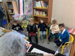 Cet après midi , heure du conte sur le thème de noël avec Nicole, lecture sur Kamishibais, dessin et chocolat au programme !!!